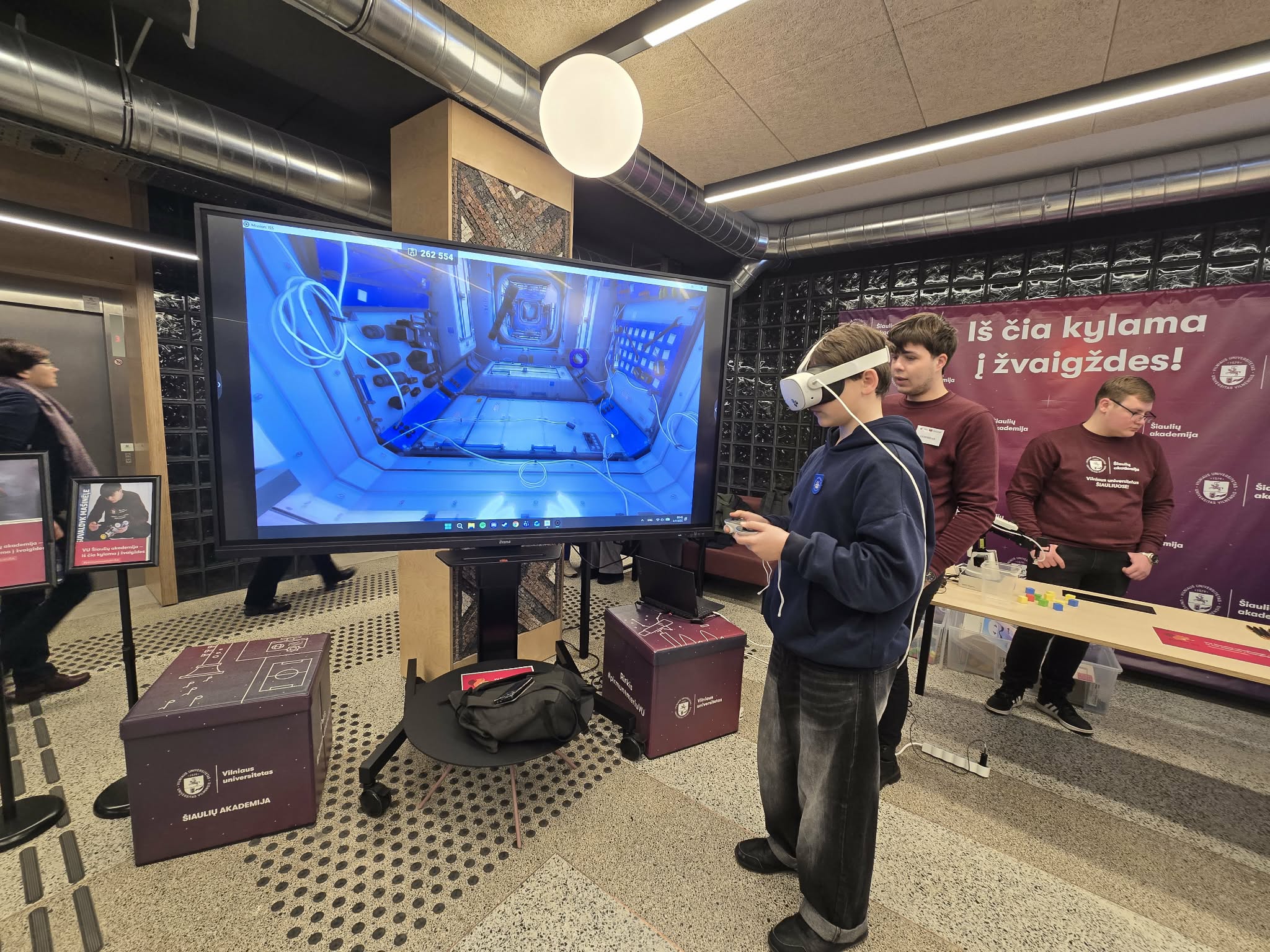 VU Šiaulių akademijos svečiai turėjo galimybę išbandyti išmaniąsias technologijas ir įvairias įtraukias veiklas – pulteliu valdomas mašinėles, virtualiuosius akinius, roboto rankas, katapultas ir daug įvairiausių pramogų. Moksleiviams, juos lydintiems mokytojams, tėveliams ir svečiams edukacines veiklas organizavo Programų sistemų specialybės studentas Gediminas Garšva ir STEAM centro metodininkas Giedrius Brūžas. Prie veiklų moksleiviams organizavimo prisidėjo Programų sistemų pirmakursiai Goda Kulikauskaitė, Ignas Dičklapis, Eitvydas Banionis, Ainoras Grušas.